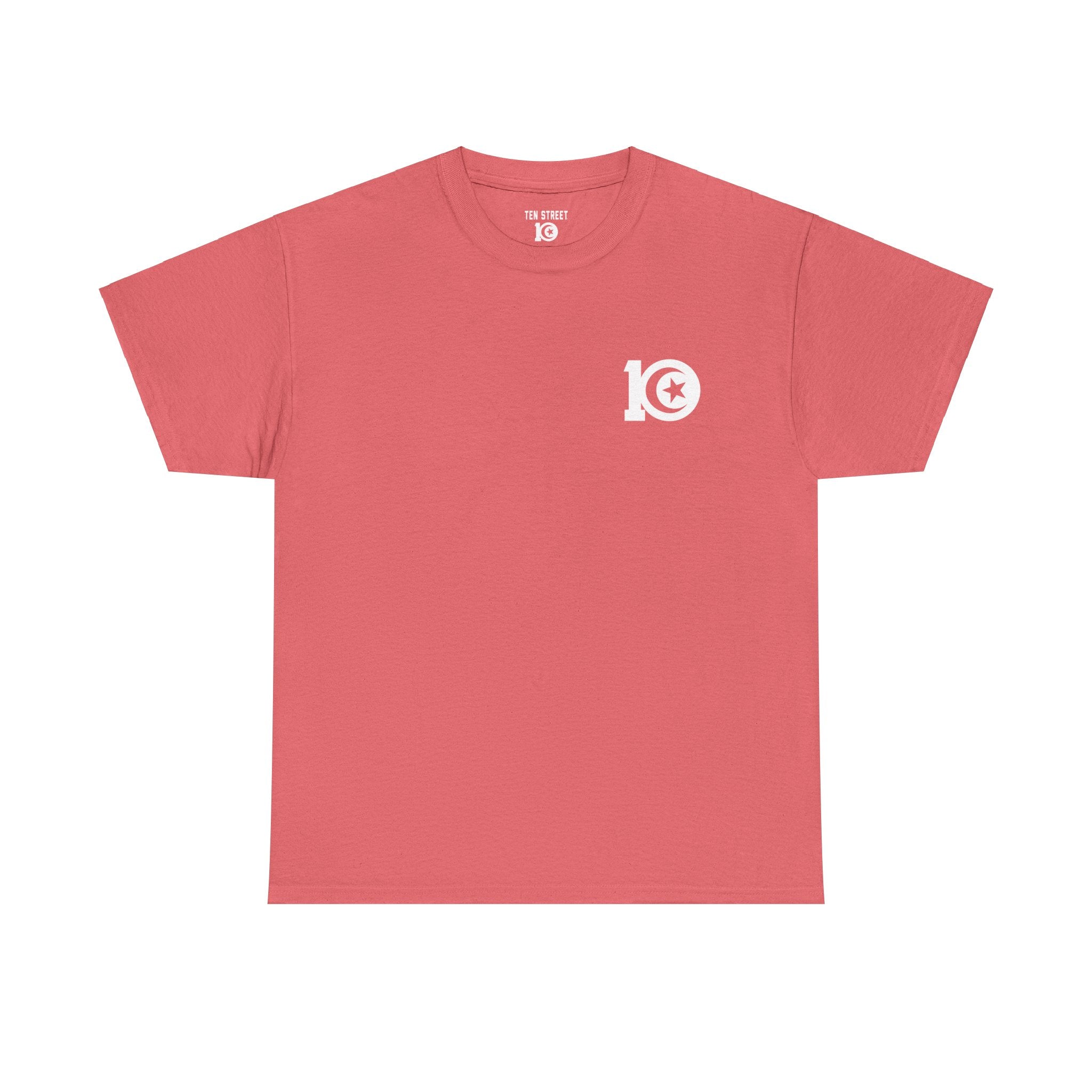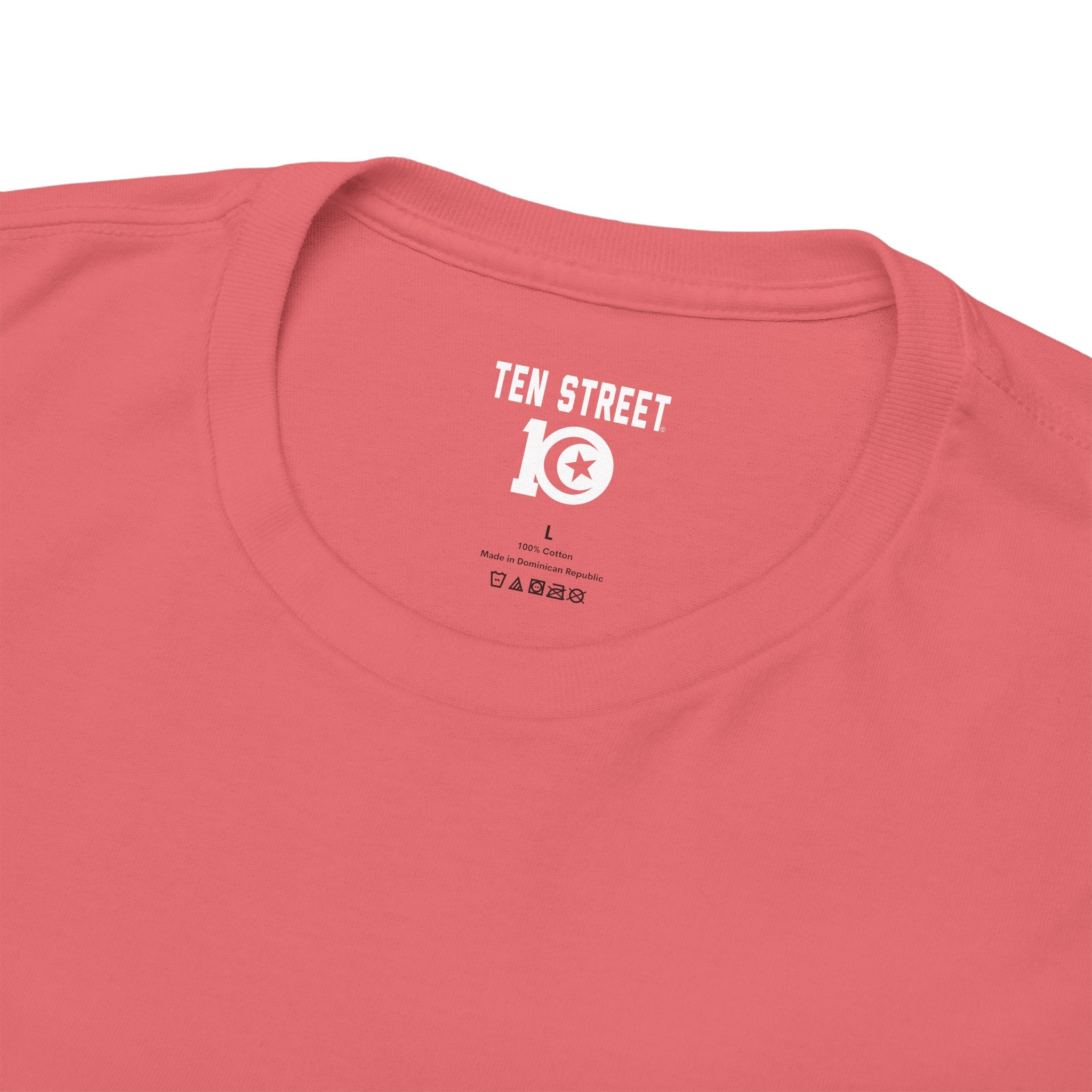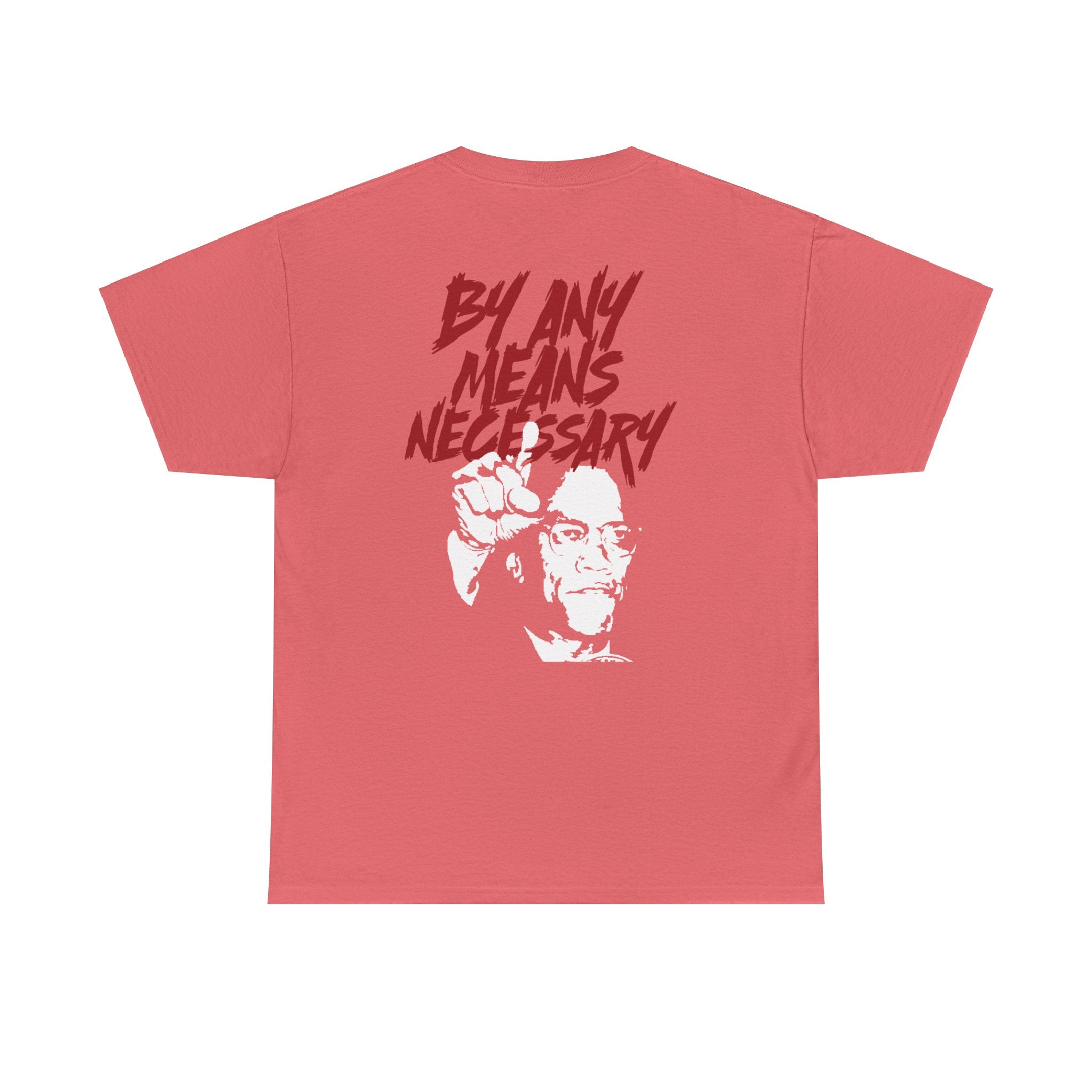 The Ten Street x Malcom X T-shirt features the signature "10" logo with a crescent "0" on the chest and a striking Malcom X portrait with the words "By Any Means Necessary" on the back. This tee is a bold and comfortable way to wear your values, printed on demand for the perfect fit and personal style.